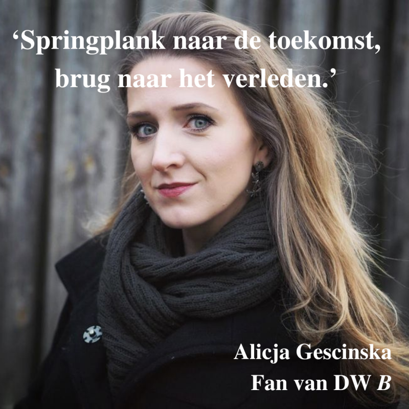 DW B is voor mij als auteur een belangrijke schakel om verbinding te maken met een lezerspubliek, nieuw werk vindt er een eerste toonmoment, teksten in opdracht brengen me op boeiende zijpaden.’