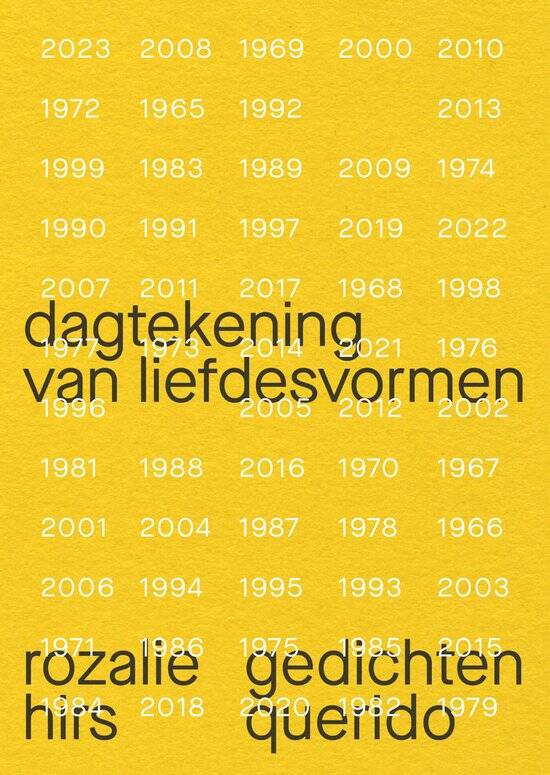 Het lijkt erop dat Hirs in zowel ecologica als dagtekening van liefdesvormen het idee van een systematiek te lijf gaat. In de recentste bundel doet ze dat onder meer door de ‘afspraken’ rondom de ordening van gedichtenbundels op zijn kop te zetten. Er zijn geen paginanummers, maar in de rechter benedenhoek van de bladzijde staat een jaartal. Links daarvan vind je de titel van het gedicht; een tekstelement dat normaliter bovenaan staat en zo de lezing al beïnvloedt voordat je aan het gedicht zelf begint. Die jaartallen zijn a-chronologisch en lijken weinig te zeggen over het gedicht dat erbij ‘hoort’. Het zou me niet verbazen als er een sterke mate van willekeur in zit.